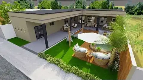 Tour pela Casa em L com 3 Quartos | Varanda, Laguinho com Telhado Aparente